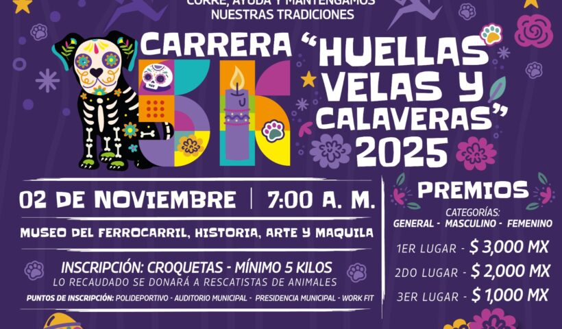Por Nadia Tapia. – El Alcalde Carlos Peña Ortiz, invita a la ciudadanía a participar en la carrera 5K con causa Huellas, Velas y Calaveras…