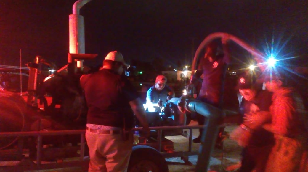 REYNOSA, Tamaulipas.- La noche de hoy, martes 14 de abril, elementos de la Dirección de Tránsito y Vialidad y de la Coordinación de Protección Civil y Bomberos, del Gobierno Municipal de Reynosa, acudieron a la colonia 16 de Septiembre, para atender el llamado de habitantes del sector, debido al reporte de la presencia de agua en sus calles.