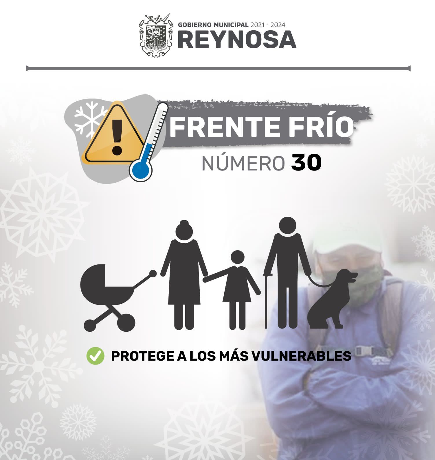 Por Nadia Tapia.- La Coordinación de Protección Civil y Bomberos del Gobierno de Reynosa informa que para esta noche de jueves 17 de febrero se pronostica la llegada del frente frío número 30, que provocará un marcado descenso en la temperatura para la región.