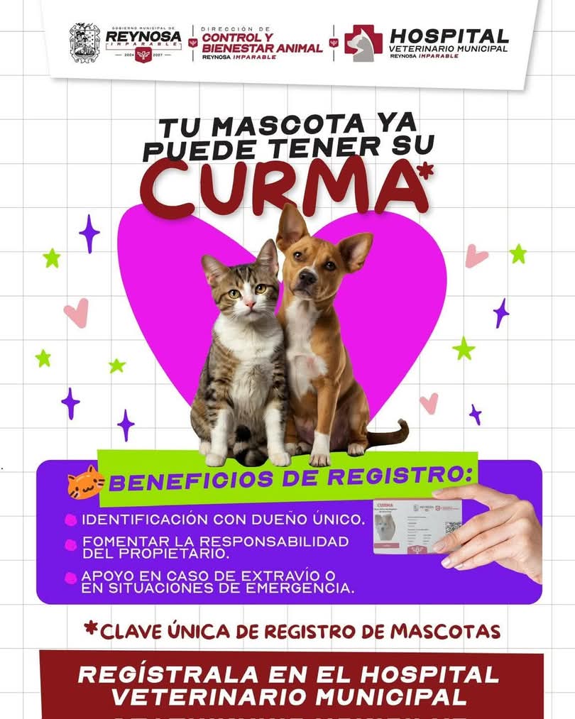 Por Nadia Tapia.- El Gobierno de Reynosa anunció la implementación del CURMA, la Clave Única de Registro de Mascotas, una identificación oficial impulsada por el alcalde Carlos Peña Ortiz para fortalecer las acciones de Bienestar Animal y promover la tenencia responsable.