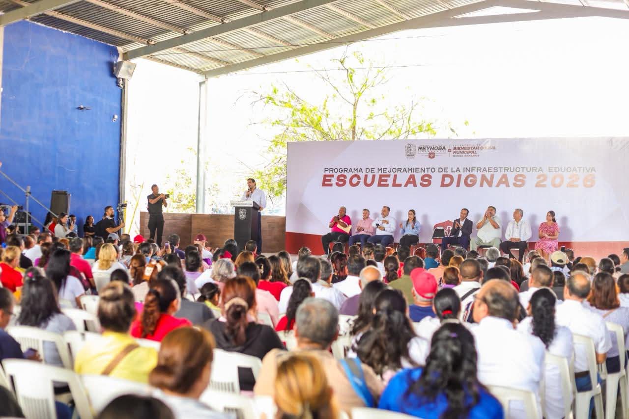 «Escuelas Dignas 2026» aporta 200 intendentes pagados por el Gobierno del Alcalde Carlos Peña Ortiz, quien dijo ante los presentes: «nosotros apostamos mucho a la educación por varias razones. Este programa inició hace un par de años de una gran necesidad, sabemos que hay muchas escuelas que no cuentan con intendentes, falta personal, y es ahí donde entra el Municipio para poder subsanar esas carencias y poder crear mejores condiciones laborales y educativas en todos los rincones de Reynosa».
