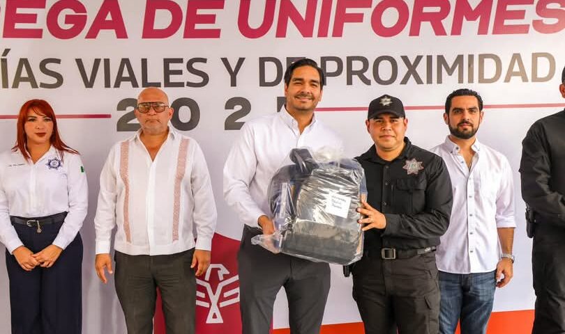 Por Nadia Tapia.- El alcalde Carlos Peña Ortiz de Reynosa encabezó la entrega de nuevos uniformes y equipo táctico a elementos de la Policía Vial…